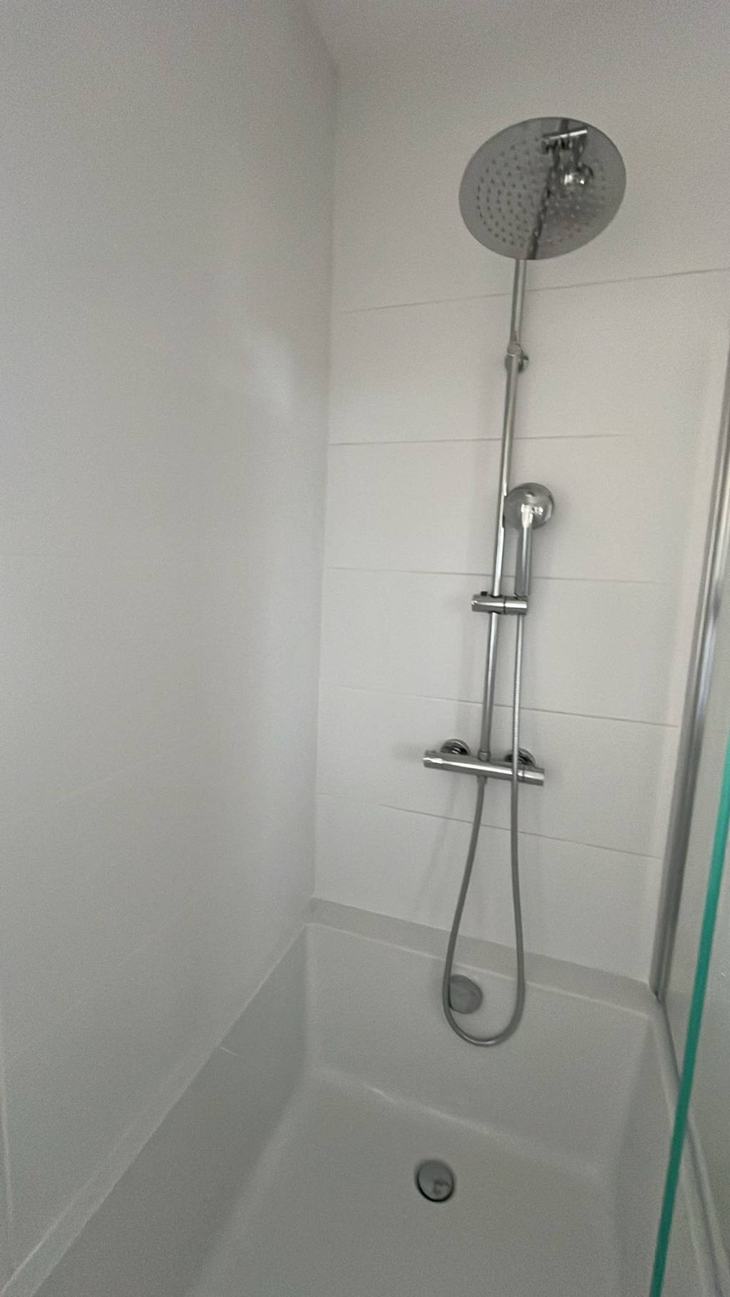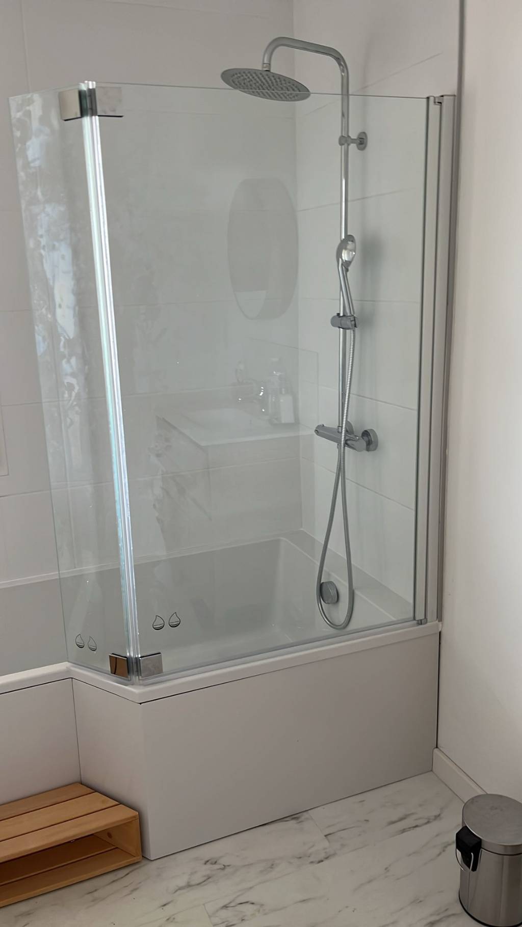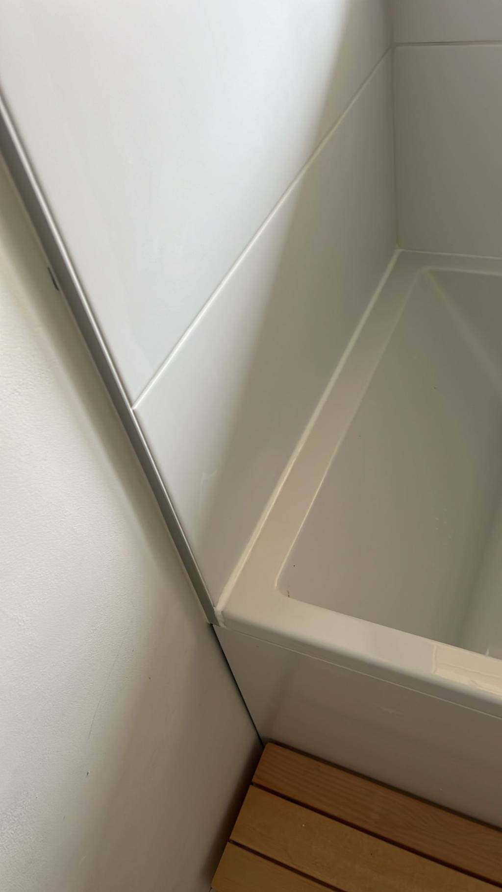 La dernière étape à consisté à la pause du tablier de baignoire et du pare baignoire et à la réalisation des joints silicone entre la faïence et la baignoire.